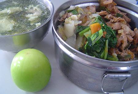 12月23日 午餐 麥片飯、蔥爆肉絲、白菜滷、青菜、海芽蛋花湯